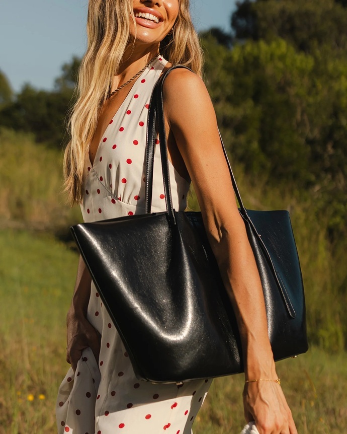 - Leather Tote: Black leather models are sleek and polished, a favourite for the office or a night out. They’re durable and age beautifully, but they typically come at a higher price.